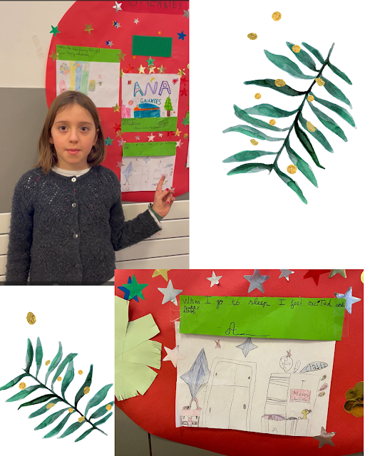 Year 3 Students created a poster for Christmas. They all made a drawing illustrating a Christmas time that makes them feel an emotion and wrote a sentence describing this emotion for the class poster.